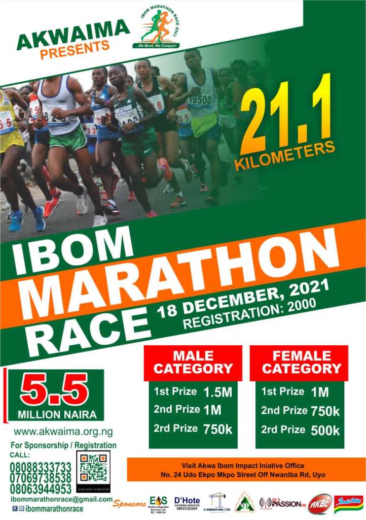 Over five million naira and consolation prizes will be up for grabs for participants at the 21.1kilometers Ibom Marathon Race scheduled for this December.
